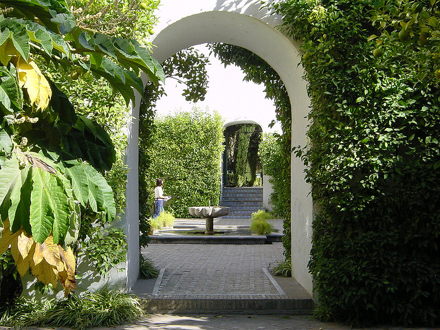 Her er et bilde fra den grønne og frodige hagen i Alcazar: