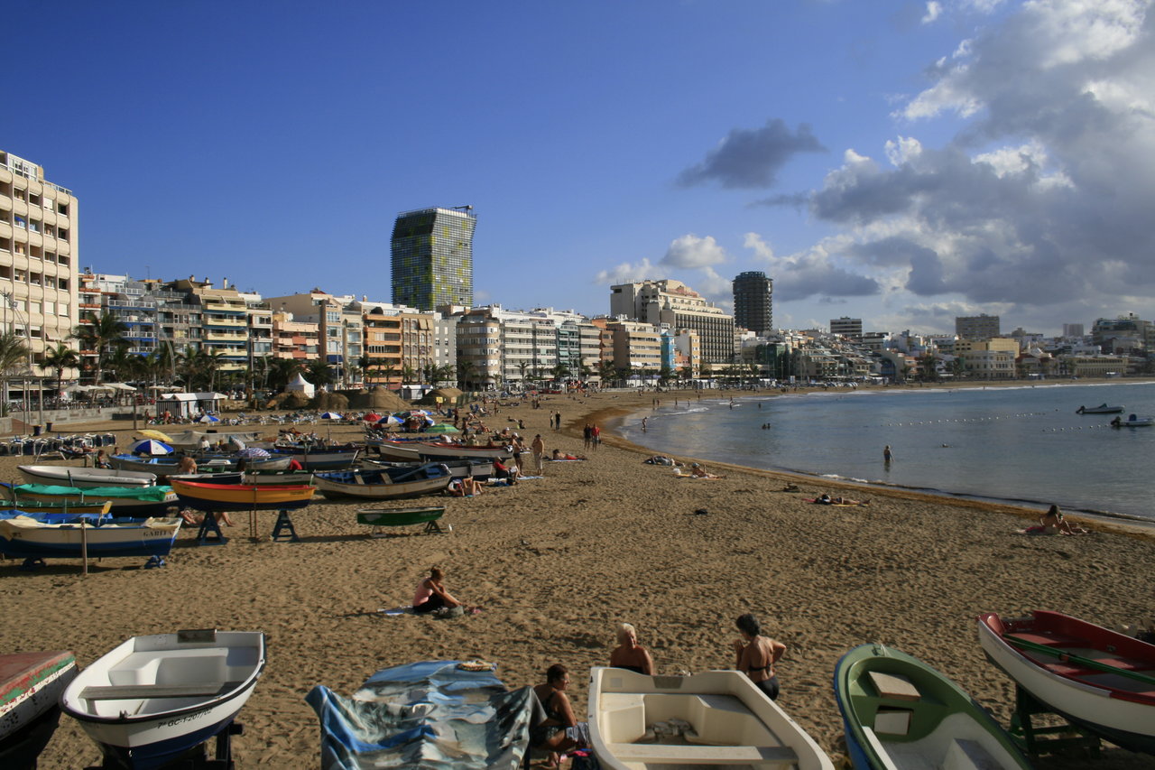 Strendene på Gran Canaria er vakre, og du finner en rekke sandstrender rundt på øya. Sør på øya er det en rekke sandstrender i Puerto Rico, Arguineguin og Maspalomas. Oppholder du deg i hovedstaden Las Palmas, så finner du faktisk en strand her også. Bildet under viser Las Canteras stranden: